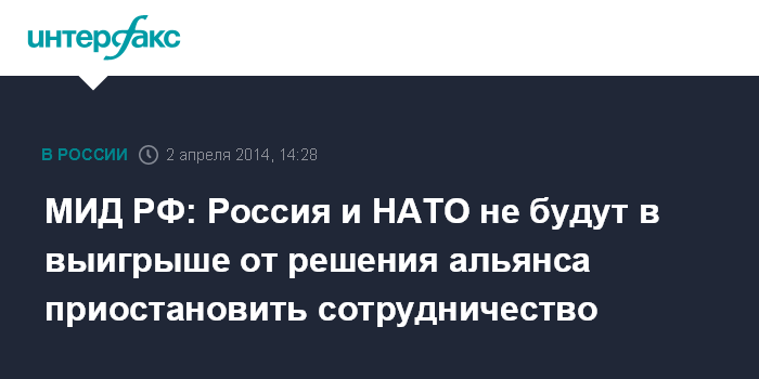 Москва. 2 апреля. INTERFAX.RU - Ни Россия, ни страны Североатлантического альянса не выиграют от решения Совета НАТО приостановить сотрудничество с РФ, заявили в МИД России.
