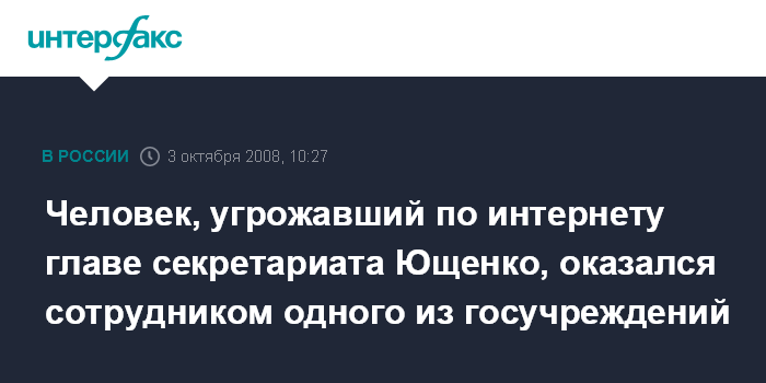 Человек, угрожавший по интернету главе секретариата Ющенко, оказался сотрудником одного из госучреждений