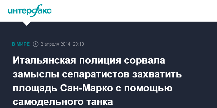 Итальянская полиция сорвала замыслы сепаратистов захватить площадь Сан-Марко с помощью самодельного танка
