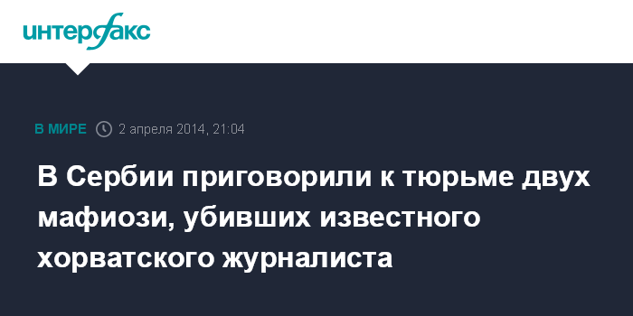 Москва. 2 апреля. INTERFAX.RU - Белградский суд признал виновными двух мафиози виновными в убийстве известного хорватского журналиста Иво Пуканича, сообщают в среду западные СМИ.