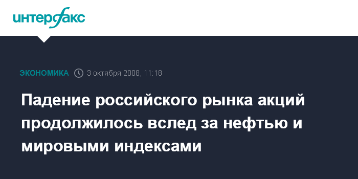 Падение российского рынка акций продолжилось вслед за нефтью и мировыми индексами