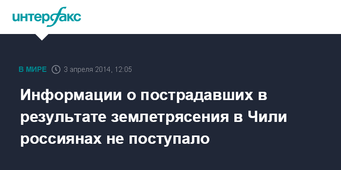 Информации о пострадавших в результате землетрясения в Чили россиянах не поступало