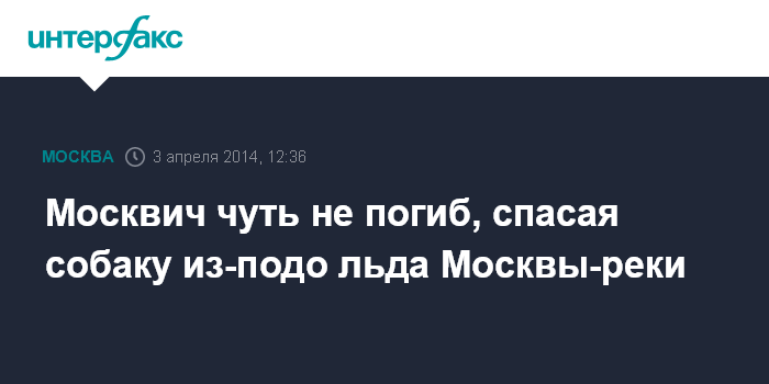 Москва. 3 апреля. INTERFAX.RU - Мужчина чуть не утонул, спасая провалившуюся под лед Кировского затона собаку в столичном районе Строгино, сообщил "Интерфаксу" в четверг источник в экстренных службах города
