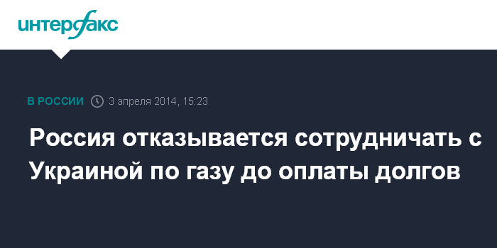 Москва. 3 апреля. INTERFAX.RU - Премьер-министр РФ Дмитрий Медведев заявил, что Украина должна изыскивать средства для расчетов с РФ за долги по газу, а также осуществлять текущие платежи, иначе сотрудничество в такой отрасли осуществляться не может.