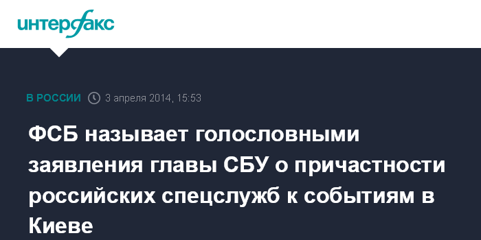 ФСБ называет голословными заявления главы СБУ о причастности российских спецслужб к событиям в Киеве