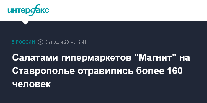Салатами гипермаркетов "Магнит" на Ставрополье отравились более 160 человек