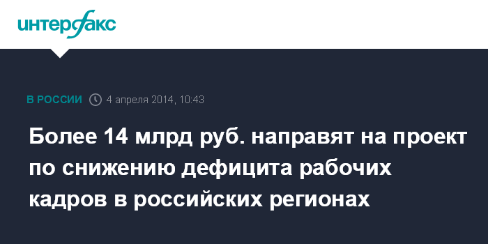 Более 14 млрд руб. направят на проект по снижению дефицита рабочих кадров в российских регионах