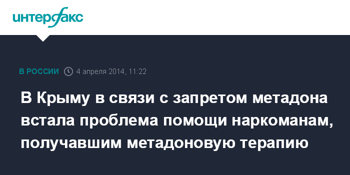 2 апреля в интервью "Интерфаксу" Иванов заявил, что в Крыму сворачивается программа метадоновой терапии наркоманов. Она разрешена на Украине, но запрещена в России. "Крым стал субъектом РФ. На него распространяются все законы РФ. В России метадон является наркотиком", - сказал Иванов.