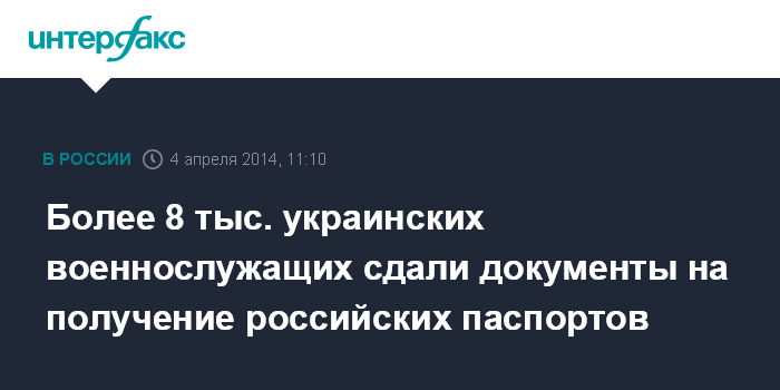 Более 8 тыс. украинских военнослужащих сдали документы на получение российских паспортов