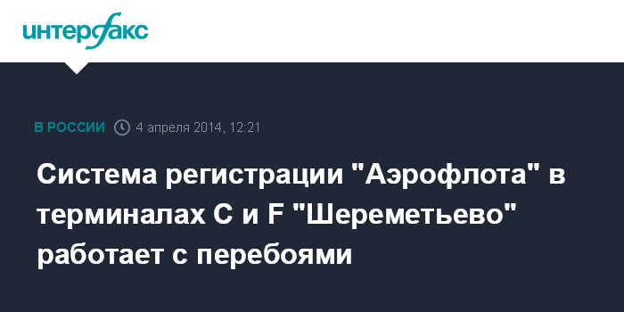Москва. 4 апреля. INTERFAX.RU - В настоящее время из-за технических проблем с IT-платформой аэропорта "Шереметьево" система регистрации "Аэрофлота" в терминалах С и F работает с задержками, сообщил ОАО "Аэрофлот - российские авиалинии" в своем микроблоге Twitter.