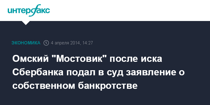 Омский "Мостовик" после иска Сбербанка подал в суд заявление о собственном банкротстве
