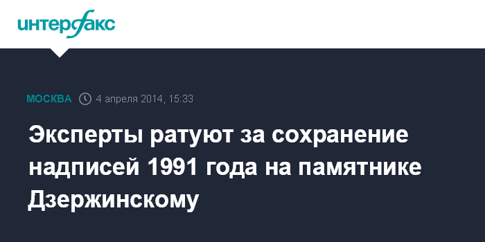 Москва. 4 апреля. INTERFAX.RU - Надписи, нанесенные на памятник Феликсу Дзержинскому в августе 1991 года, нужно постараться сохранить во время реставрации, считает председатель президиума научно-методического совета при департаменте культурного наследия города Москвы Андрей Баталов.