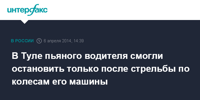 Москва. 6 апреля. INTERFAX.RU - В Туле в воскресенье сотрудники полиции были вынуждены с помощью табельного оружия остановить грузопассажирский автомобиль, за рулем которого находился пьяный водитель, сообщил "Интерфаксу" руководитель пресс-службы областного УМВД Андрей Ярцев.
