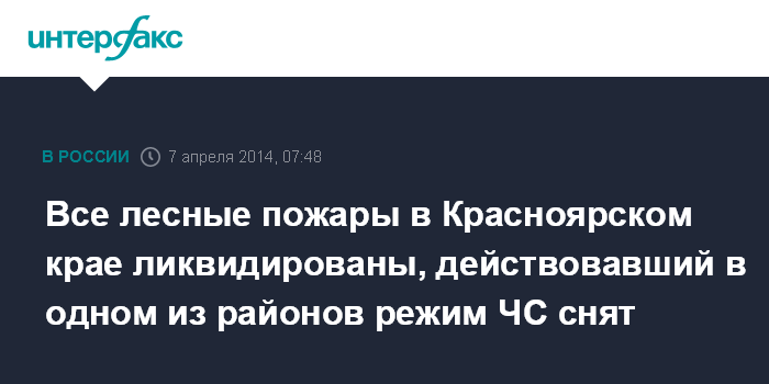 "В минувшую субботу в Минусинском районе также был снят режим ЧС в лесах, введенный накануне районной комиссией по ЧС по рекомендации министерства природных ресурсов и экологии", - добавила собеседница агентства.