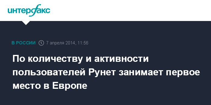 Там уточнили, что по количеству и активности пользователей Рунет занимает первое место в Европе, по объемам генерации и потребления русскоязычного контента - второе-третье места в мире.