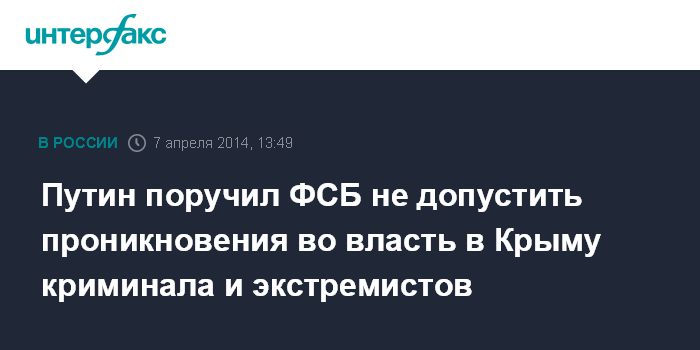 Путин поручил ФСБ не допустить проникновения во власть в Крыму криминала и экстремистов