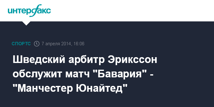 Шведский арбитр Эрикссон обслужит матч "Бавария" - "Манчестер Юнайтед"