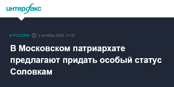 Москва. 3 октября. INTERFAX.RU - Эксперты считают важным как можно скорее определить особый статус Соловецких островов. "До тех пор, пока проблема статуса не будет определена, нормальной реставрационной, природоохранной деятельности и развития инфраструктуры там начаться не может", - заявил на пресс-конференции в пятницу гендиректор Паломнического центра Московского патриархата Сергей Житенев.