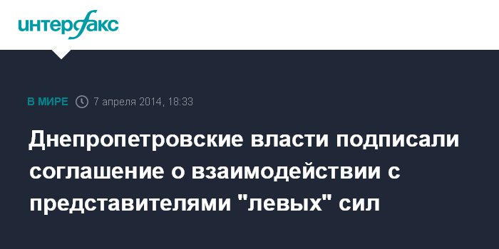 Москва. 7 апреля. INTERFAX.RU - Представители Днепропетровской облгосадминистрации подписали с руководителями Компартии Украины, общественных организаций "Русский блок" и "Народная воля" документ, в котором оговорены условия совместной работы.