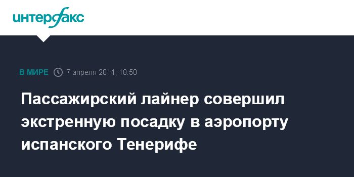 Пассажирский лайнер совершил экстренную посадку в аэропорту испанского Тенерифе