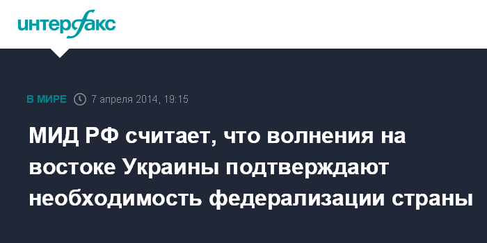 МИД РФ считает, что волнения на востоке Украины подтверждают необходимость федерализации страны