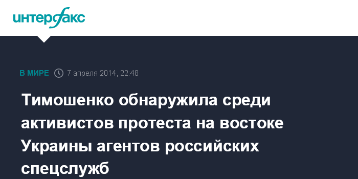 Тимошенко обнаружила среди активистов протеста на востоке Украины агентов российских спецслужб