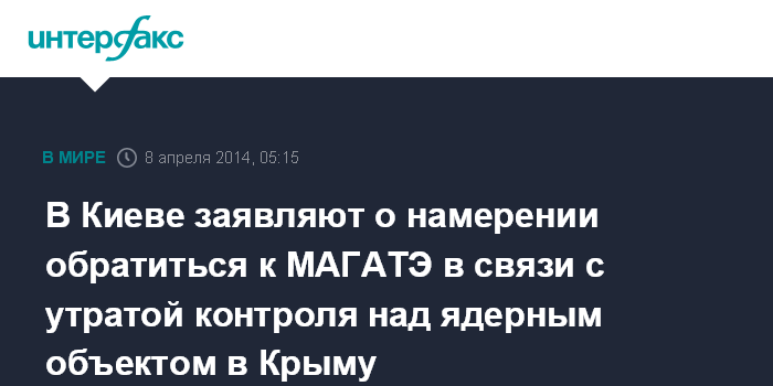 В Киеве заявляют о намерении обратиться к МАГАТЭ в связи с утратой контроля над ядерным объектом в Крыму