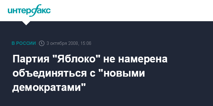 Партия "Яблоко" не намерена объединяться с "новыми демократами"