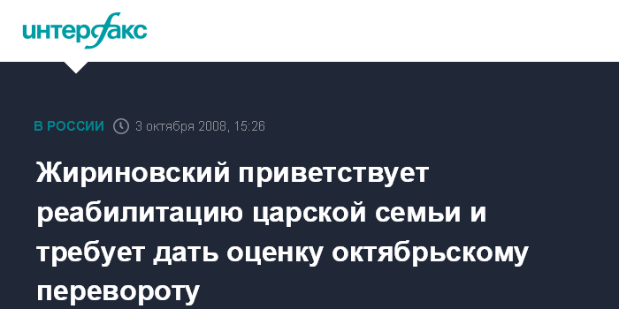 Жириновский приветствует реабилитацию царской семьи и требует дать оценку октябрьскому перевороту