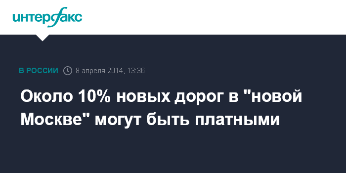 По его словам, всего в "новой Москве" необходимо построить 430 км новых дорог и реконструировать 170 км старых. "По нашей оценке, платными могут быть порядка 10% дорог на этой территории", - сказал Жидкин.