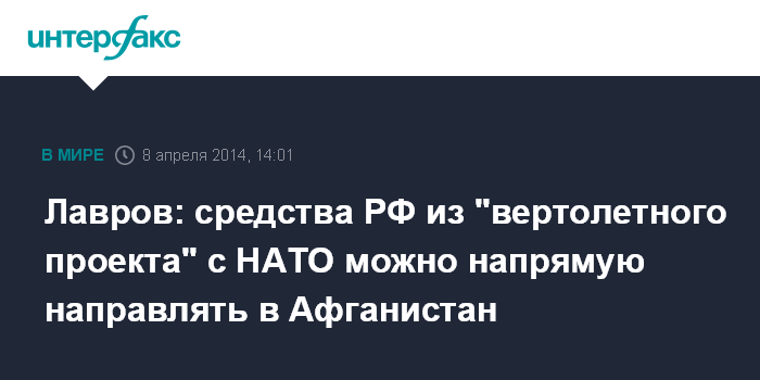 Лавров: средства РФ из "вертолетного проекта" с НАТО можно напрямую направлять в Афганистан