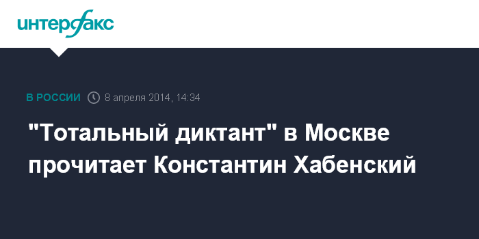 Москва. 8 апреля. INTERFAX.RU - Народный артист России Константин Хабенский прочитает текст "Тотального диктанта", который пройдет 12 апреля, в Московской высшей школе социальных и экономических наук, сообщается на сайте проекта.