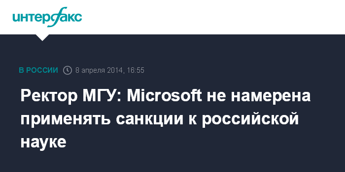 Москва. 8 апреля. INTERFAX.RU - Корпорация Microsoft не готовит санкций против российской науки, заявил ректор МГУ Виктор Садовничий.
