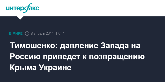 Тимошенко: давление Запада на Россию приведет к возвращению Крыма Украине