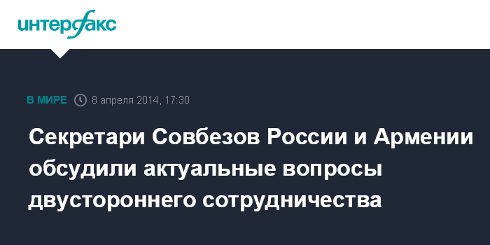 "Секретари Советов безопасности подчеркнули важность скорейшего вступления в силу подписанного 25 июня 2013 года в Ереване межгосударственного договора о развитии военно-технического сотрудничества", - сказали в Совбезе.