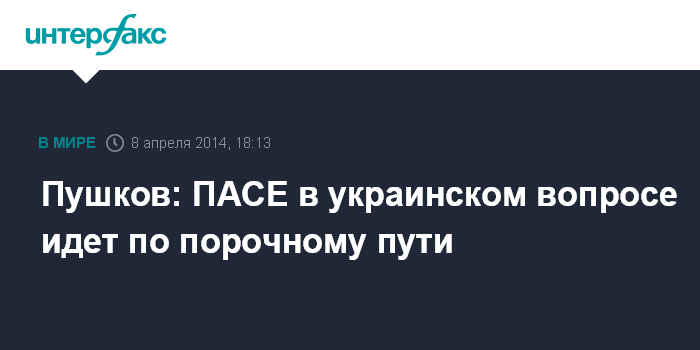 Москва. 8 апреля. INTERFAX.RU - Глава российской делегации в ПАСЕ Алексей Пушков заявил о категорическом несогласии с подготовленным в рамках ассамблеи докладом "по украинскому вопросу", который будет обсуждаться в среду на сессии ПАСЕ.