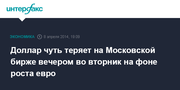 Москва. 8 апреля. INTERFAX.RU - Доллар сократил снижение, но остался в небольшом минусе на торгах Московской биржи к вечеру во вторник, евро вырос на фоне повышения единой валюты на рынке Forex. Рубль растерял рост и перешел к небольшому снижению по отношению к бивалютной корзине, которая держится в зоне интервенций ЦБ РФ в связи с сохранением геополитического давления.