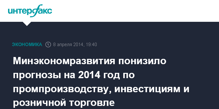 Минэкономразвития понизило прогнозы на 2014 год по промпроизводству, инвестициям и розничной торговле