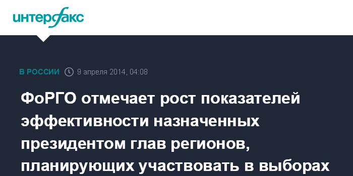ФоРГО отмечает рост показателей эффективности назначенных президентом глав регионов, планирующих участвовать в выборах