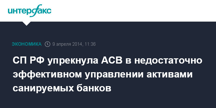 СП РФ упрекнула АСВ в недостаточно эффективном управлении активами санируемых банков