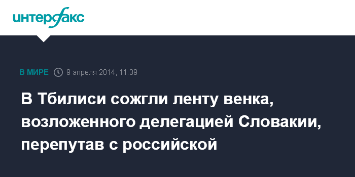 В Тбилиси сожгли ленту венка, возложенного делегацией Словакии, перепутав с российской
