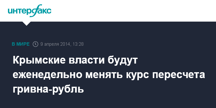 Москва. 9 апреля. INTERFAX.RU - Министерство экономического развития и торговли Крыма будет еженедельно вносить правительству республики предложения по изменению коэффициента пересчета цен, тарифов с украинской гривны на российский рубль.