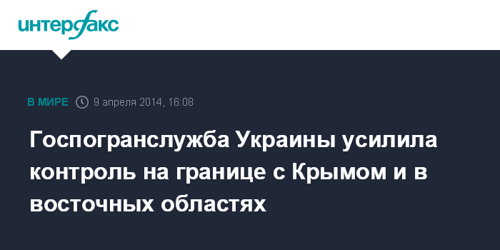 Киев. 9 апреля. INTERFAX.RU - Государственная пограничная служба осуществляет усиленный контроль в пунктах пропуска на границе с Крымом и в восточных областях совместно с подразделениями Вооруженных сил, МВД и СБУ.