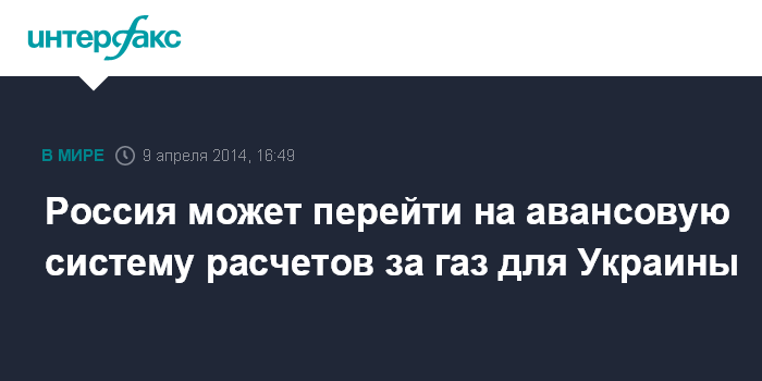 Россия может перейти на авансовую систему расчетов за газ для Украины