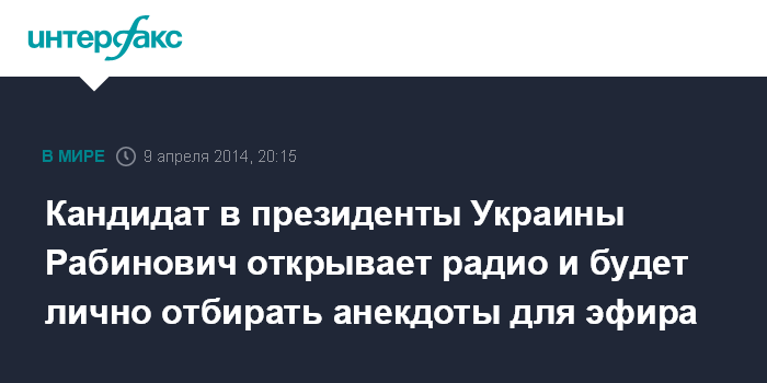 Кандидат в президенты Украины Рабинович открывает радио и будет лично отбирать анекдоты для эфира