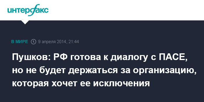 "Мы готовы сотрудничать и вести диалог в рамках Парламентской ассамблеи Совета Европы в том случае, если наши коллеги настроены на сотрудничество и диалог, пусть даже и критическое сотрудничество", - сказал Пушков журналистам в среду после голосования в ПАСЕ по резолюции по украинскому вопросу.