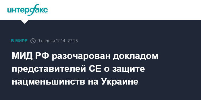 МИД РФ разочарован докладом представителей СЕ о защите нацменьшинств на Украине