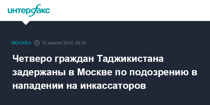 Четверо граждан Таджикистана задержаны в Москве по подозрению в нападении на инкассаторов