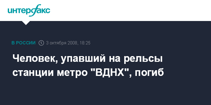 Человек, упавший на рельсы станции метро "ВДНХ", погиб