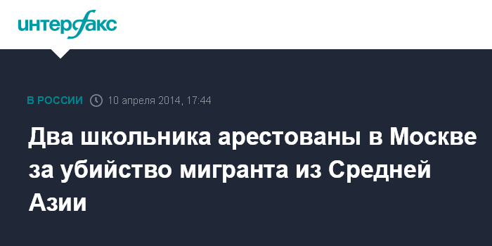 Москва. 10 апреля. INTERFAX.RU - Арестованы двое подростков, подозреваемых в жестоком убийстве мигранта в Измайловском парке в Москве в сентябре прошлого года, сообщили в пресс-службе СКР.